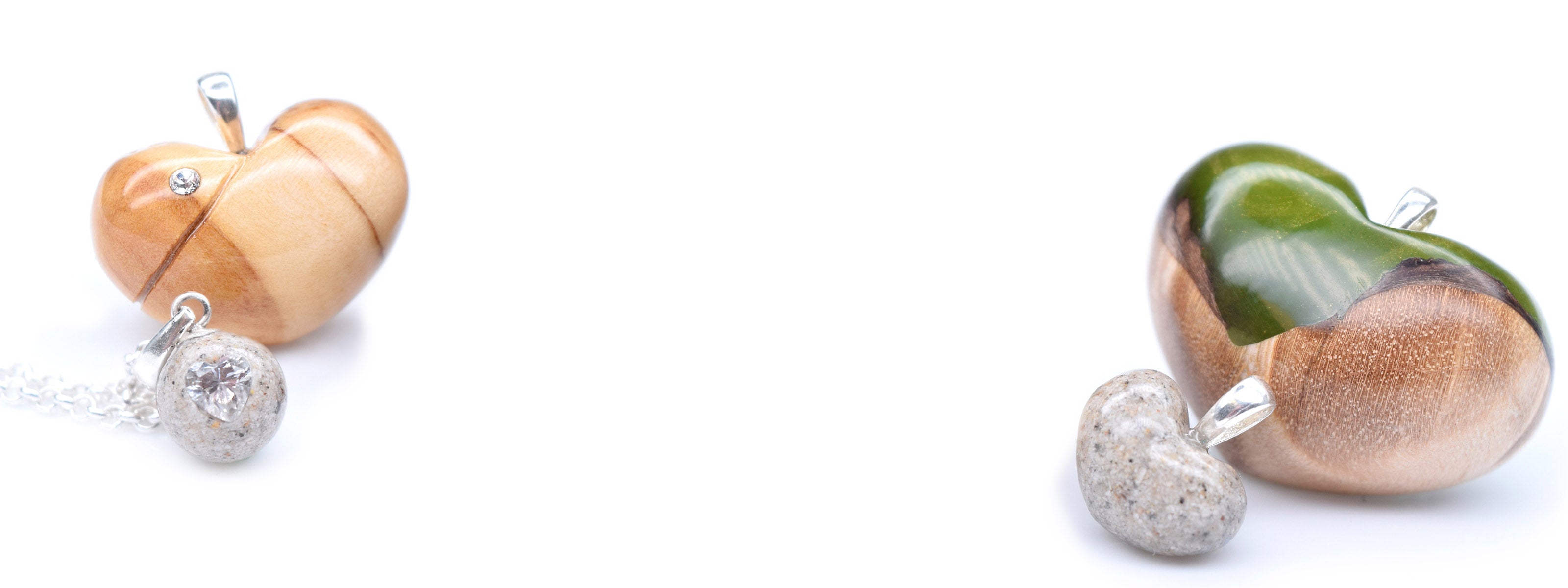 Pendentif coeur en bois + poussière de cendre