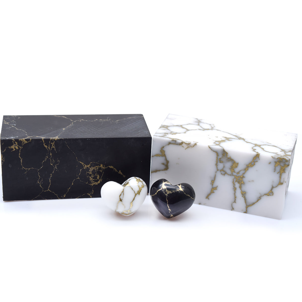 Ce magnifique matériau est fabriqué à partir de minerais de pierre naturelle broyés, pigmentés puis stabilisés dans de la résine acrylique. Il en résulte un matériau éclatant et magnifique, imitant les vraies pierres précieuses, tout en offrant la résistance et la stabilité nécessaires pour une durabilité et une facilité de travail supérieures à celles des pierres précieuses.