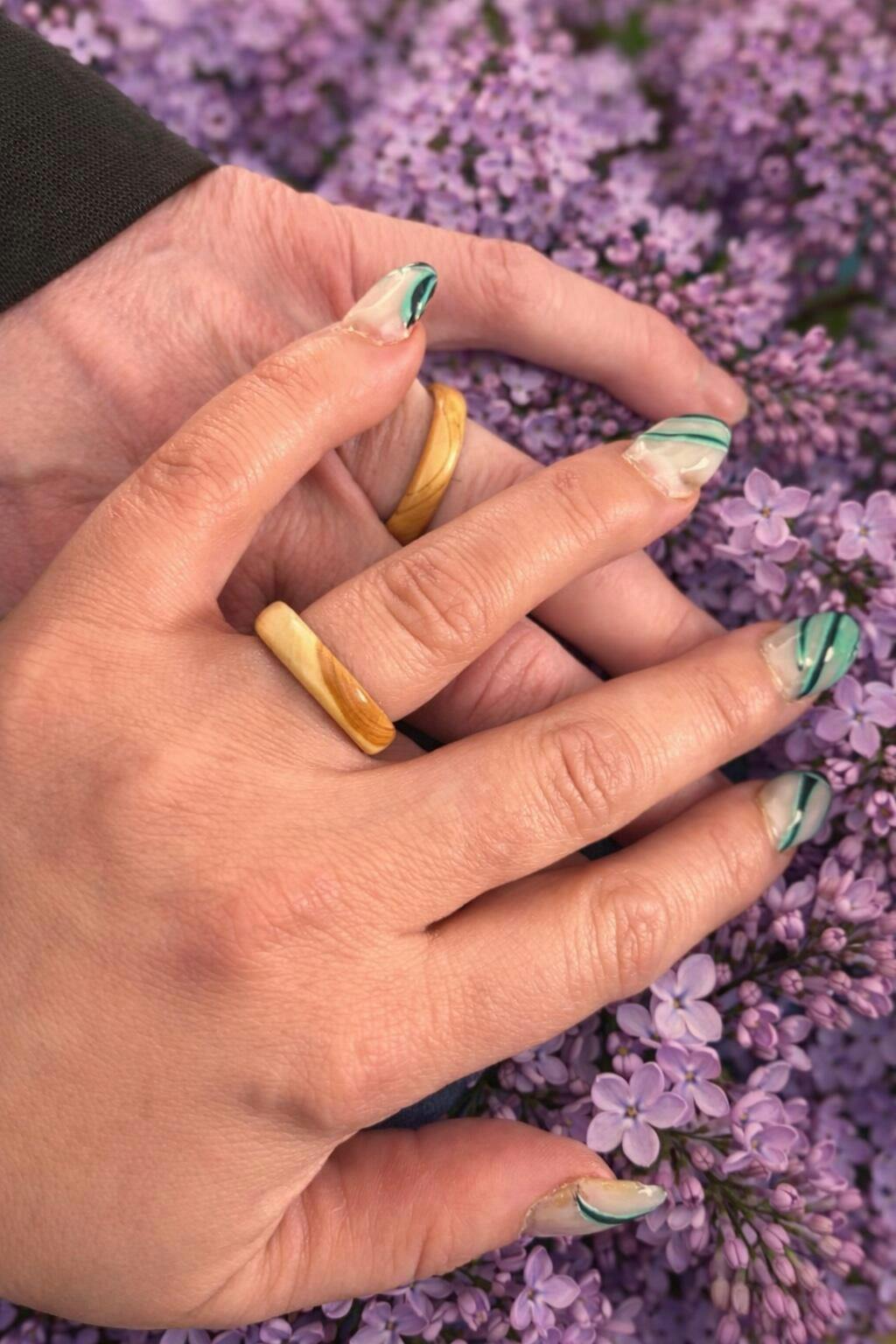 Jonc en acier inoxydable recouvert de bois et finition lustrée